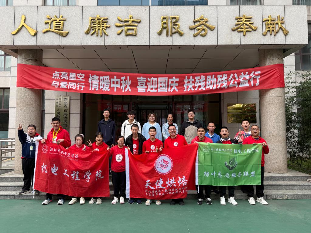2025年10月15日,太阳集团城网址83138绿叶志愿服务联盟社团在海港区残疾人联合会建立了就业帮扶基地,开展扶残助残志愿服务活动,学工办老师、社团同学、残联工作人员共计20余人参加活动。