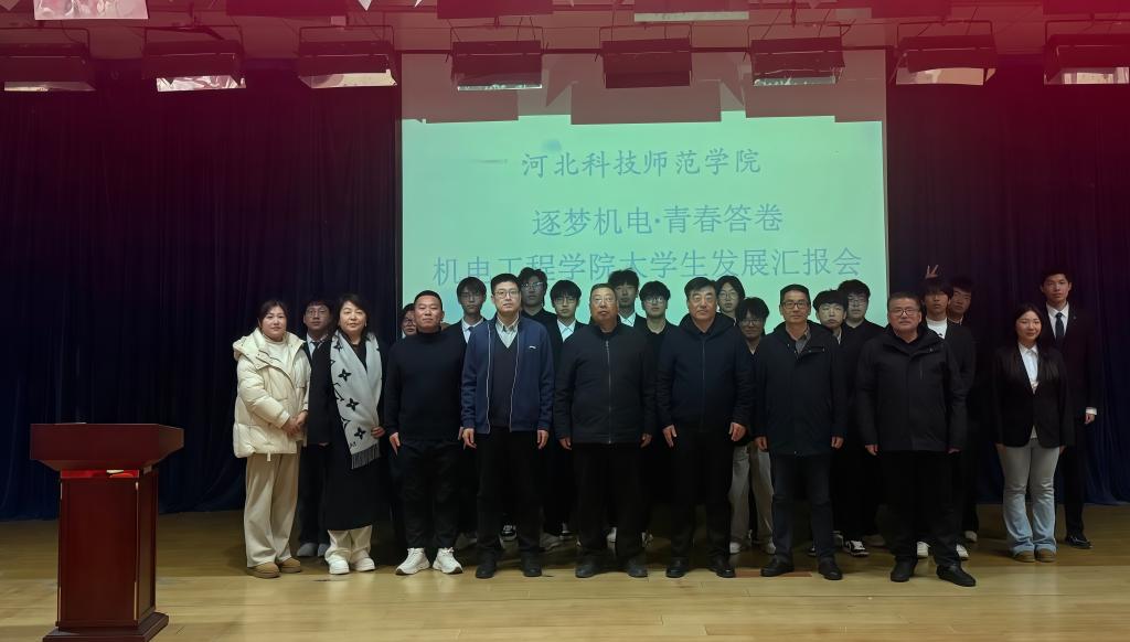 2025年12月11日,太阳集团城网址83138在开发区校区学术报告厅举办“逐梦机电·青春答卷——大学生发展汇报会”。校党委常委、副校长冯瑞银,学生处处长张红新,学院领导班子成员、辅导员、班主任、学业导师及学生代表共200余人参加了活动,部分学生家长通过线上直播“云端”观摩,共同见证机电学子在融入强国建设和民族复兴进程中的成长足迹。