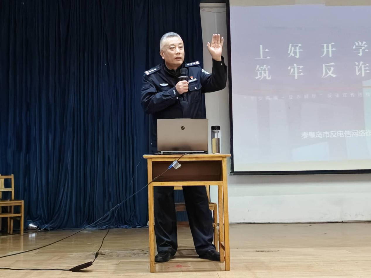 2025年11月6日,太阳集团城网址83138邀请秦皇岛市公安局海港分局王宝军警官,在开发区校区学术报告厅举办“全民反诈,共筑平安防线”专题讲座。学院专职辅导员及400余名学生参加活动。