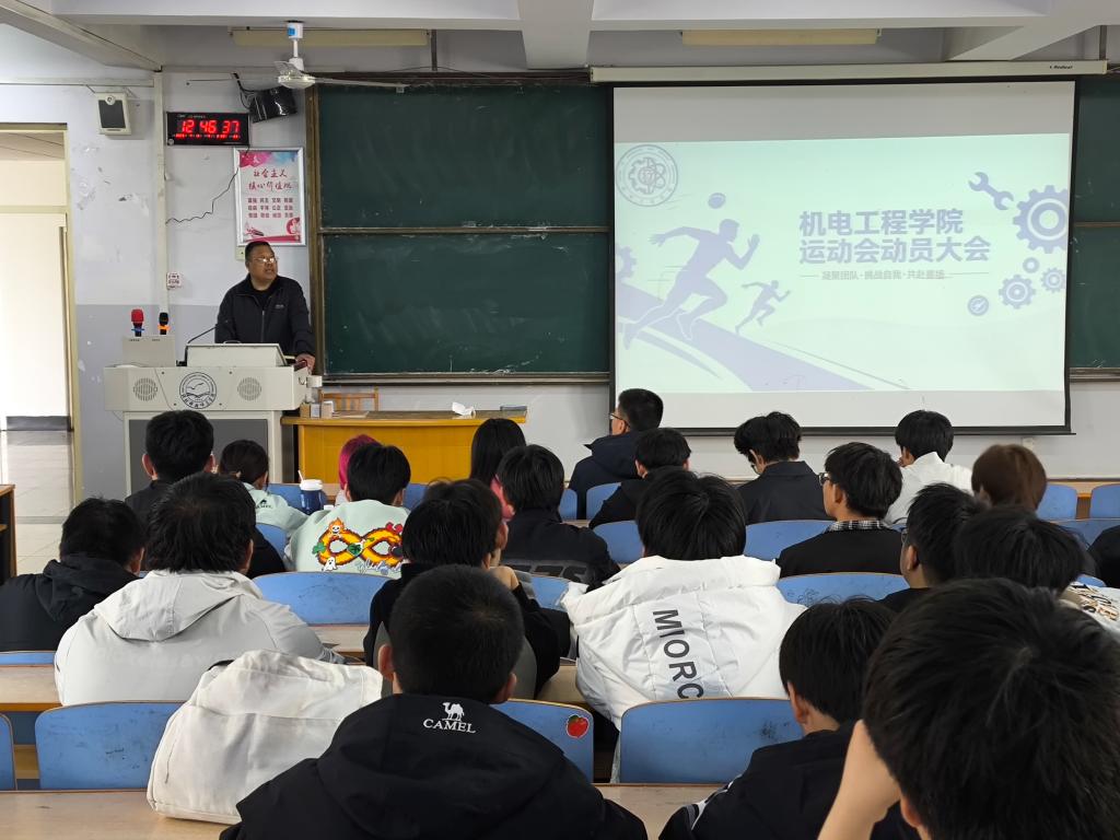 学院党委书记站在立德树人高度,深刻阐释校运会意义。他强调,体育是立德树人的重要载体,运动员要提高站位,将拼搏精神转化为学习动力,做到文体兼修、强化责任担当,充分展现机电学子良好精神风貌;要求学院团委做好赛事保障,以体育育人助推学院高质量发展,为培养德智体美劳全面发展的新时代新人奠定基础。对全体参赛运动员提出殷切期望,希望全体参赛运动员继续秉承“勤奋务实、诚实敬业、志存高远、追求卓越”的学院精神;发扬不怕苦、不怕累革命光荣传统;以更加昂扬的斗志、奋进的姿态、饱满的热情投入到运动会中;在新的环境中,有新气象、新作为;并预祝全体参赛运动员突破自我、再创佳绩!