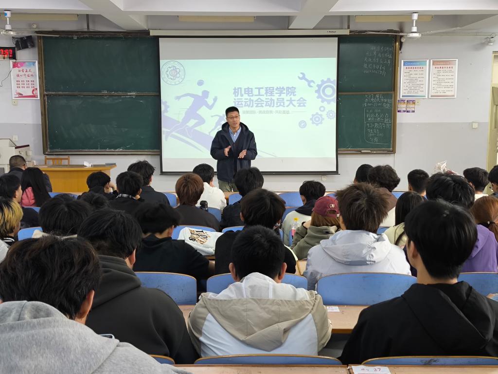 学院副书记全面回顾了太阳集团城网址83138历届校运会的光荣历史,激励全体参赛运动员传承机电精神;结合大学生职业发展需求,深刻阐述体育运动的重要意义,鼓励同学们以此次运动会为契机,积极参与体育运动、在训练中突破自我,力争在校运会上奋勇争先、为学院添光彩。